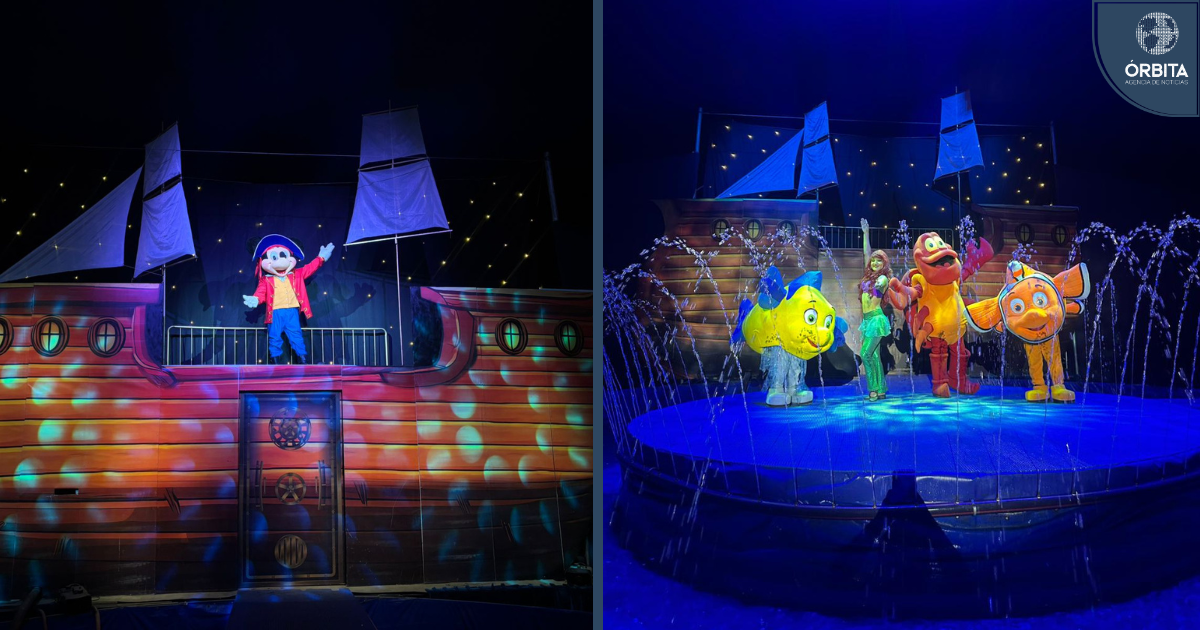 El espectáculo propone una experiencia distinta: un escenario flotante sobre una gigantesca piscina que transforma cada acto en un show visual impactante, donde el agua se convierte en protagonista. Luces, reflejos y coreografías se combinan para crear una atmósfera envolvente que transporta al público a un universo marino lleno de fantasía.