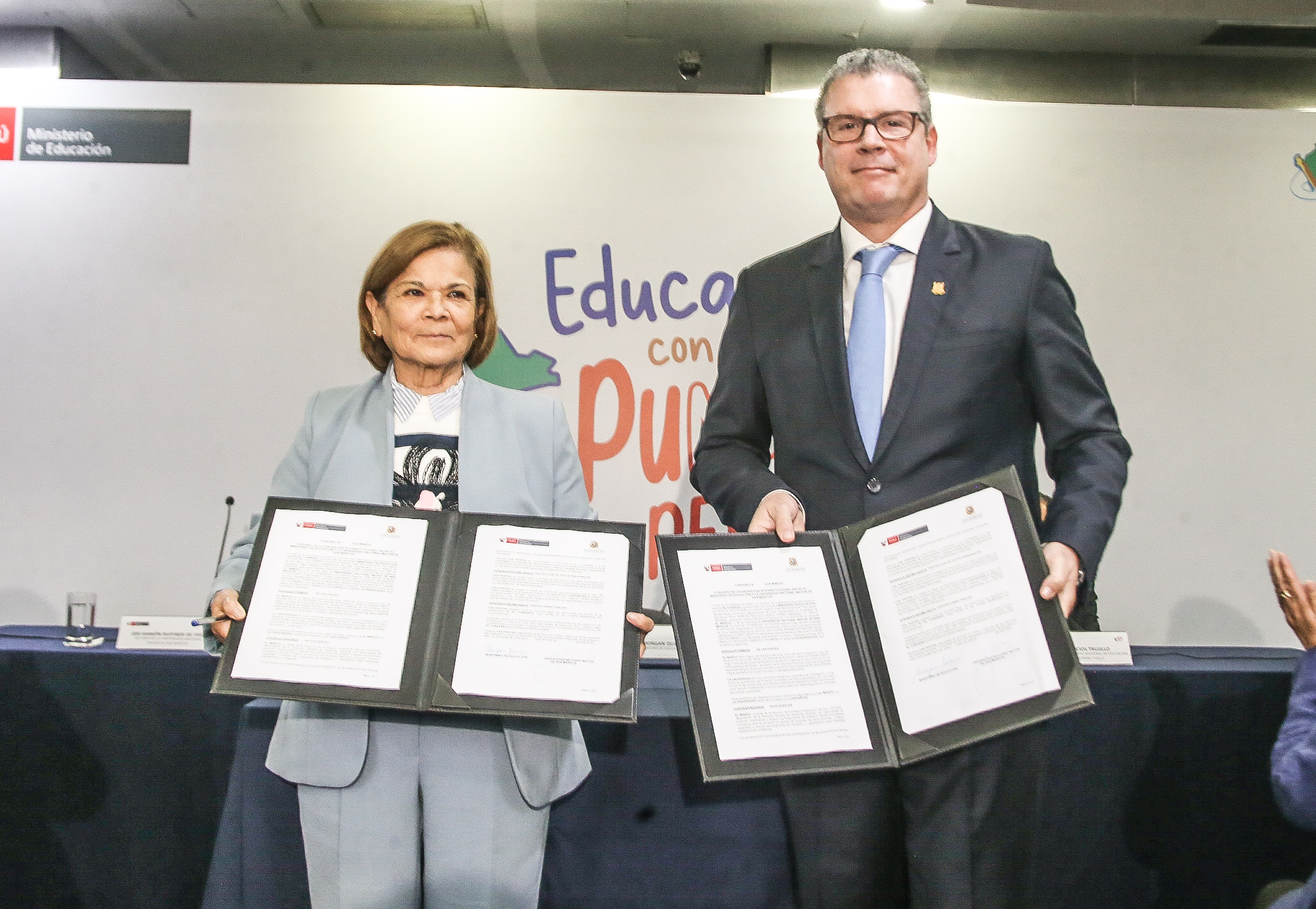 En el evento, que contó con la presencia de las rectoras Jerí Ruffner (UNMSM) y Lida Asensios (La Cantuta), el titular del Minedu destacó que su sector trabaja de manera integral para mejorar el sistema educativo desde la educación inicial hasta la superior.